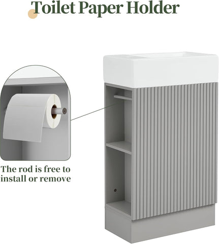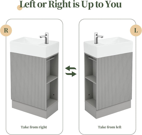 • Functional Storage Solution: This freestanding bathroom vanity includes a soft-close cabinet door for quiet operation and a spacious interior for storing towels, paper products, and toiletries. The open side shelves provide convenient storage for toothbrush cups or decorative items and can be installed on either the left or right side to suit your layout.