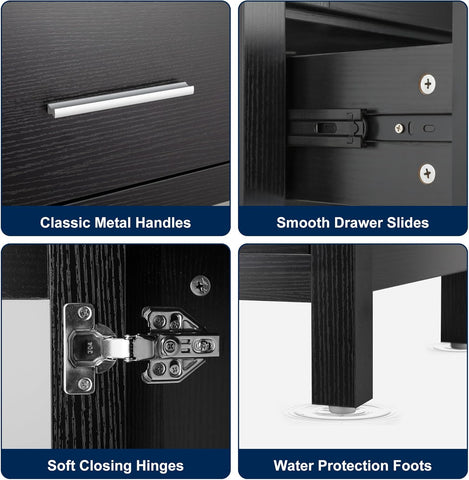 - Durable MDF Construction – Frosted tempered glass door enhances elegance while protecting privacy. Soft-close hinges reduce noise and prevent slamming.