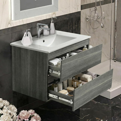 - Large Storage Capacity – Two full-extension drawers glide smoothly and fully open. A U-shaped plumbing cutout maximizes usable storage space for toiletries and daily essentials.