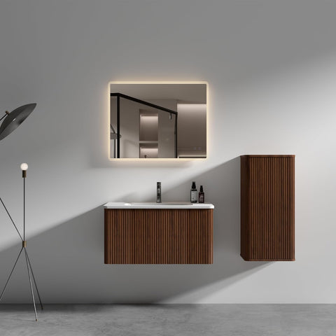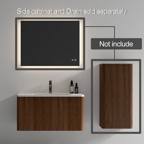30" Wall-Mounted Floating Bathroom Vanity with Sink, Large Storage Cabinet, One-Piece Basin with Overflow, Modern Brown Walnut