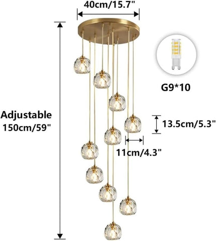 Chandelier Light Modern Chandelier Copper Crystal Pendant Light 47" Long Adjustable Ceiling Light for Living Room Staircase Hotel Ceiling Lighting Fixture(10 Head) A116-B0DHGP8BZQ