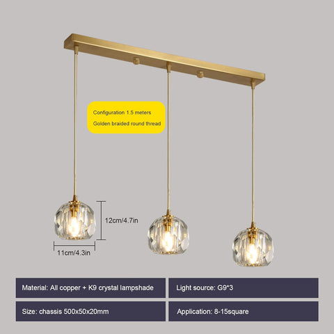 Nordic creative all-copper light luxury crystal lamps, using K9 crystal lampshades, each exquisite lamp arm has to undergo strict quality control, rust prevention treatment, glaze sealing and oiling, etc. become.