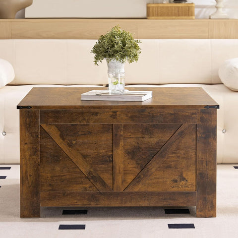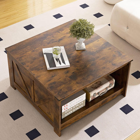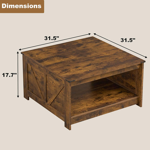 Farmhouse Coffee Table, Wood Square Coffee Tables, 31.5" D x 31.5" W, Rustic Brown