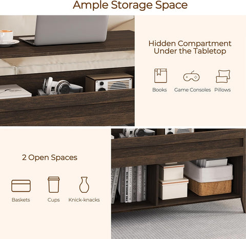 - Lift-top Design: The tabletop can be lifted and moved forward to create a decent space of L47.5 x W23.5 in for work or dine. The metal adjustment mechanism helps lift the tabletop from 19.5 to 24.5 in easily and without noise