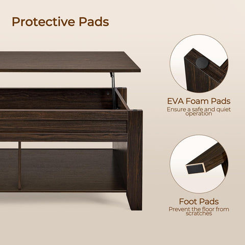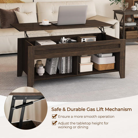 Lift Top Coffee Table with Hidden Storage Compartment & 2 Open Shelves