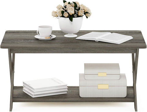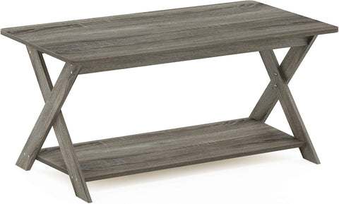 Modern Simplistic Criss-Crossed Coffee Table, 35.4 in x 19.6 in x 16 in, French Oak Grey