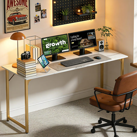 Computer Desk,Home Office Desk, Modern Simple Style Study Writing (Gold, 55 Inch)