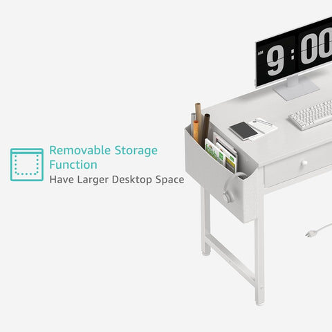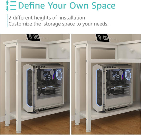 - Modern Simple Design: Computer Desk with 2 Storage Shelves & 2 Fabric Drawers with Side Bag, Providing Ample Storage Space. Flexible Installation Options (Left or Right) & Adjustable Shelf Heights for Customizable Storage. Made from Durable P2 Particle Board, Scratch-Resistant, Anti-Collision, Waterproof, Protecting Home Office Desk Surface from Daily Wear and Tear