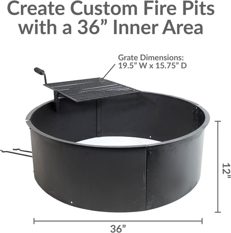 Gather around the fire in style with this 36 Inch Fire Pit Ring with Cooking Grate. Built from heavy-duty steel, it creates a defined, safe burn zone for wood fires in your yard.