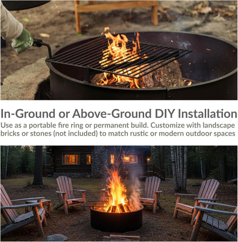 36 Inch Fire Pit Ring with Cooking Grate - Heavy-Duty Steel