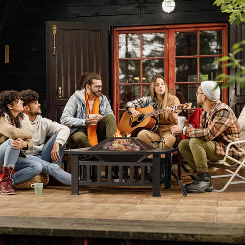 - [ Reliable Security ]: Firepit table features square design with sturdy legs for stability, while the mesh spark screen and poker provided effectively prevent sparks from flying and safely move the grill