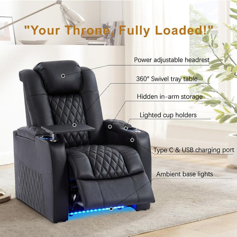 Leather Home Theater Seating, Classic Series Game Seats Movie Theater Chairs Recliner Sofa with Type-C USB Charger