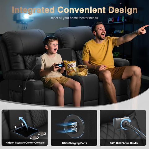 Loveseat Recliner Sofa, Home Theater Seating with Center Console