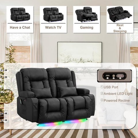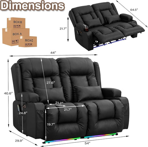 TUNYI Power Loveseat Recliner Sofa - Home Theater Seating with Massage & Heat Faux Leather RV Recliner Loveseat Sofa