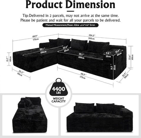 Elevate your space with this boneless modular sectional sofa, cloud couch with left facing chaise, oversized deep seat, l-shaped. Designed with both style and functionality in mind, this piece makes a perfect addition to any home.