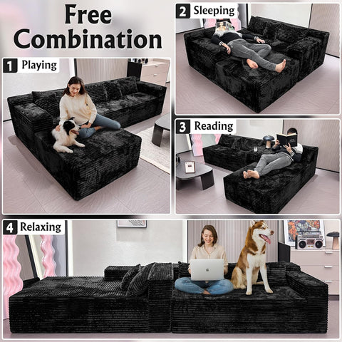 Boneless Modular Sectional Sofa, Cloud Couch with Left Facing Chaise, Oversized Deep Seat, L-Shaped