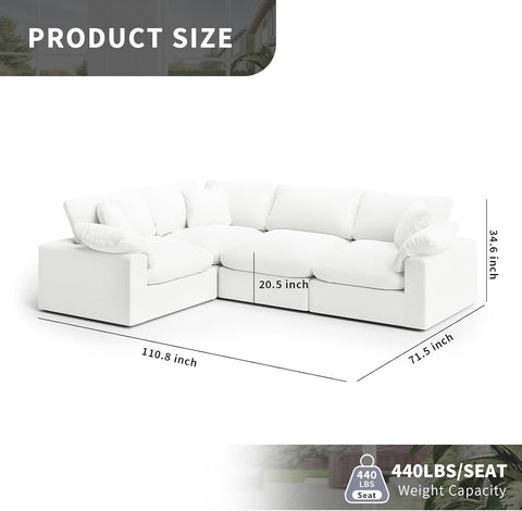 Cloud Modular Sectional Sofa, Oversized Convertible Modular Cloud Couch, Down Feather Filled Sectional Sofa Comfy Upholstered Deep Seat Couches for Living Room, Sofa Covers Washable & Replaceable A124-B0DJ7C2HPB