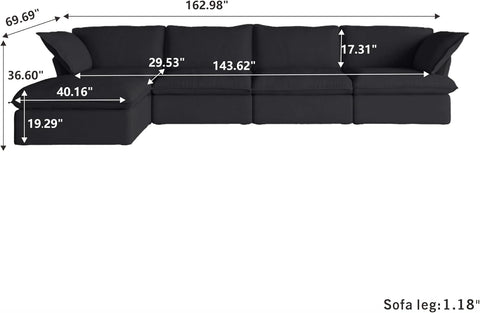 Overall Size: 162.98"L x 69.9"W x 36.6"H. Sofa type: sectional couch sofa; modular sectional; modern sofa; velvet sofa;sofa sectionals for living room; living room couch; cloud couch dupes; comfy couch;modern couch.This cloud sofa can add more comfort to your living room.