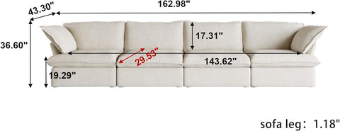 Overall Size: 162.98"L x 43.3"W x 36.6"H. Sofa type: sectional couch sofa; modular sectional; modern sofa; velvet sofa;sofa sectionals for living room; living room couch; cloud couch dupes; comfy couch;modern couch.This cloud sofa can add more comfort to your living room.