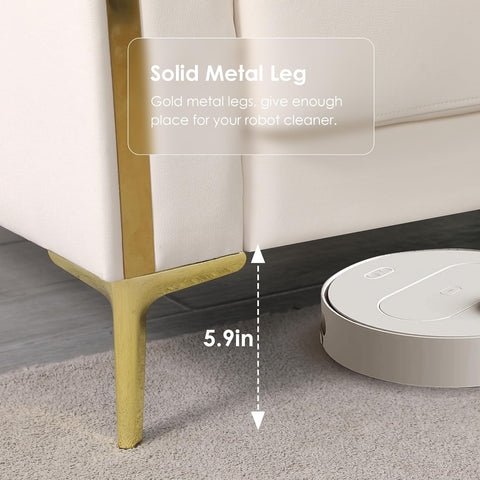 Elevate your space with this fotosok white leather couch sofa, office couches 78'' apartment faux leather sofa with 2 throw pillows & gold metal. Designed with both style and functionality in mind, this piece makes a perfect addition to any home.