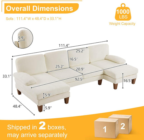 Karl home U-Shape Sectional Sofa Couch 111" Modern 4-Seat Sofa with Chaises Chenille Fabric Upholstered Covertible