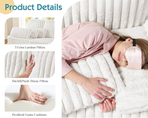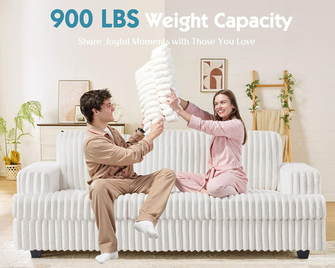 VanAcc 89 Inch Sofa, Modern Couch with Deep Seats, Comfy Sofa with 3 Throw Pillows, Upholstered Couch for Living Room