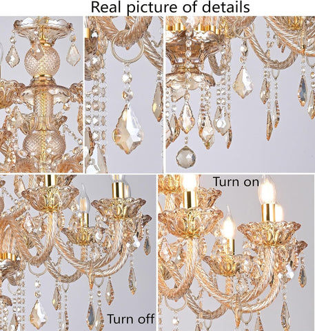 Luxury K9 Crystal Chandelier 12 Lights, Amber Gold Crystal Lighting Pendant Ceiling Fixture Modern Crystal Candle Chandeliers Lamp for Living Room, Kitchen, Foyer (12 Ligths) A110-B0CRHG6FWD