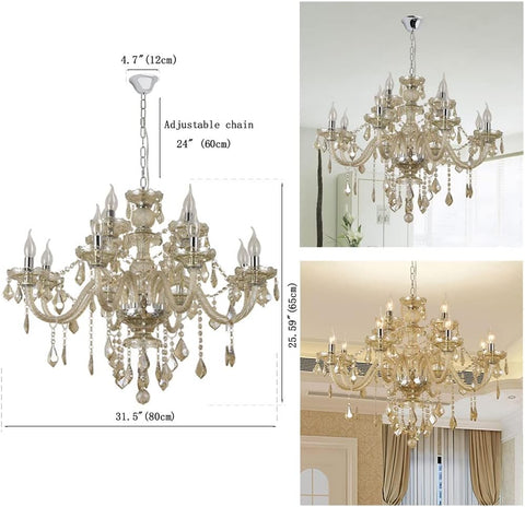 Modern Luxury K9 Crystal Chandelier, 12-Light Cognac Crystal Pendant Light,Candle Style Crystal lamp Lighting Fixture for Dining Room,Hotels, Hall Way, Bars, Restaurants (12 Lights) A110-B09BM3WMKD