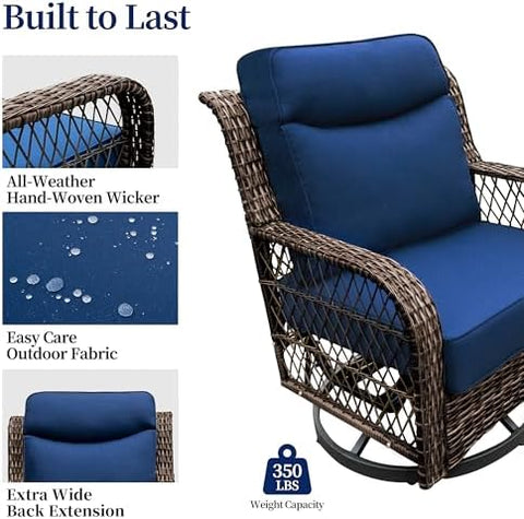 3-Piece Wicker Outdoor Patio Furniture Set - Swivel with Thick Cushions for Patio, Garden & Porch