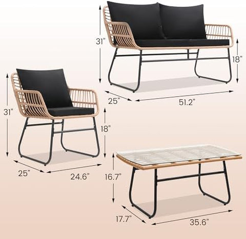 Transform your outdoor living space with this premium 4-Piece Outdoor Patio Furniture Set. Crafted with high-quality wicker materials, this set offers the perfect combination of style, comfort, and durability for your Backyard, Patio.