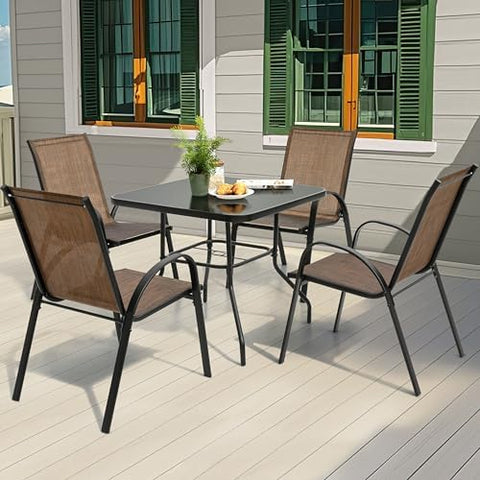 5-Piece Metal Outdoor Patio Furniture Set - Dining | Black for Patio, Garden & Porch
