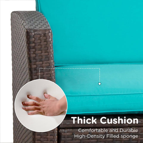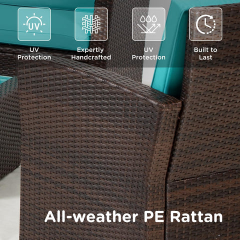 4 Piece Patio Furniture Sets, Wicker Conversation Set 4 All-Weather Outdoor Sectional Patio Sofa for Porch Deck with Blue Cushion Brown Rattan Sofa Chair A106-B0DBLPY2GF