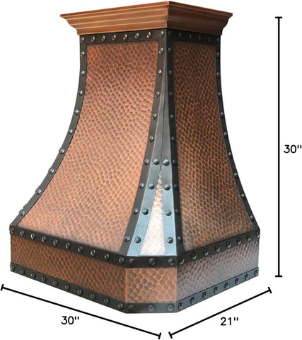 Premium 30-Inch Wall Mount Range Hood - Hand-Hammered Copper