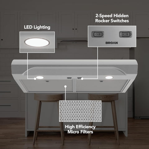 Transform your kitchen with this premium under cabinet range hood. Crafted from high-quality stainless steel, it delivers exceptional ventilation performance while enhancing your kitchen aesthetics. This high-performance ventilation system effectively eliminates smoke, cooking odors, and airborne grease particles, keeping your kitchen fresh and clean.
