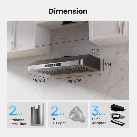 Transform your kitchen with this premium 30-inch under cabinet range hood. Crafted from high-quality stainless steel, it delivers exceptional ventilation performance while enhancing your kitchen aesthetics. This 980 CFM powerhouse effectively eliminates smoke, cooking odors, and airborne grease particles, keeping your kitchen fresh and clean.