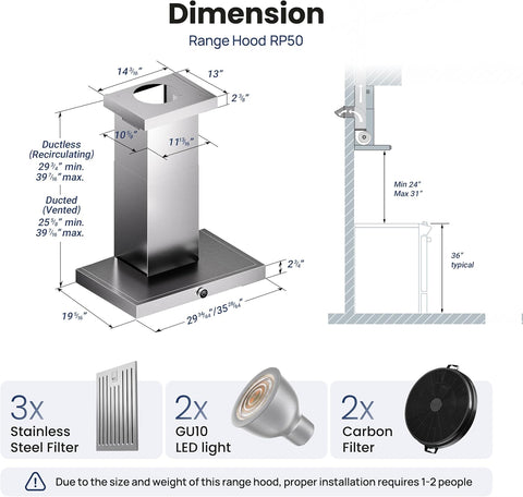 Ideal for home chefs and culinary enthusiasts alike, this range hood combines powerful performance with elegant design. The stainless steel finish complements both modern and traditional kitchen styles, providing reliable performance and enduring style for years to come.