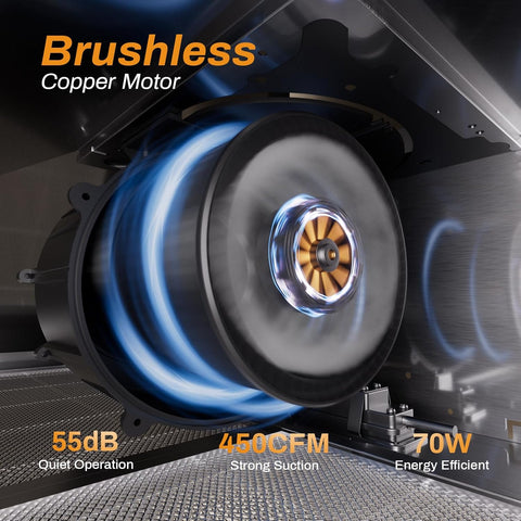 - Powerful 450 CFM airflow for superior kitchen ventilation