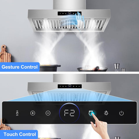 36 Inch Stainless Steel Wall Mount Range Hood 700 CFM 3 Speed Touch Control, LED Lights Convertible Ducted/Ductless