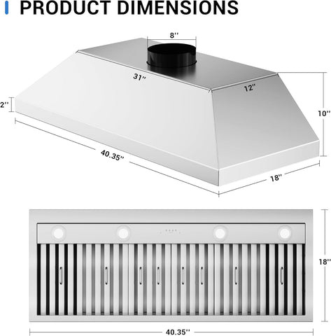 42 Inch Stainless Steel Range Hood Insert 1150 CFM 4 Speed LED Lights Dishwasher-Safe Baffle Filters