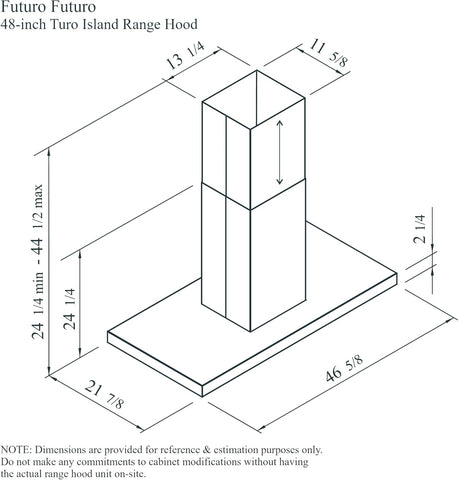 - 48-inch island mount design for standard kitchen layouts