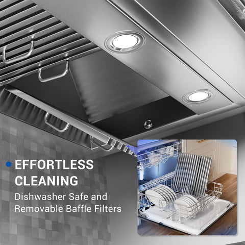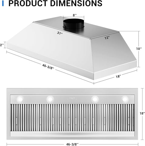 48 Inch Stainless Steel Range Hood Insert 1150 CFM 4 Speed LED Lights Dishwasher-Safe Baffle Filters