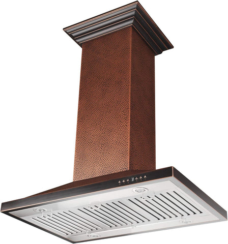 Premium 36-Inch Island Mount Range Hood - Hand-Hammered Copper