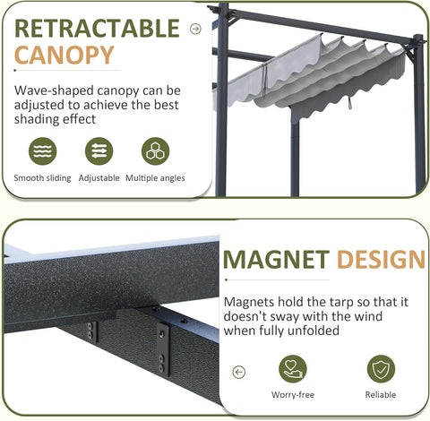 10'x12' Outdoor Pergola with Retractable Canopy, Patio Metal Heavy-Duty Gazebo Shelter