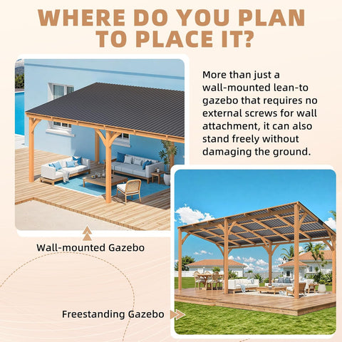 20' x 10' Outdoor Wood Gazebo, Large Outdoor Lean to Hardtop 10x20 Cedar Pergolas and Gazebos Clearance
