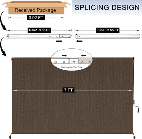 7'W x 6'H Mocha Patio Shades Roll up Outdoor Roller Shade Crank Wand Blind Cordless