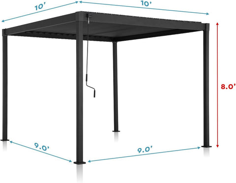 80S Louvered Pergola 10' x 10', Modern Style with Adjustable Louvers Roof, Garden, Easy Assembly, Durable, Charcoal