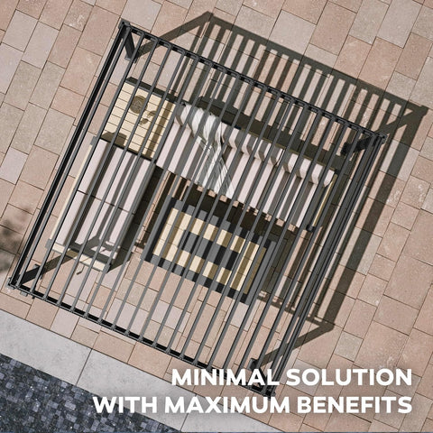 - Modern and minimalist design: The MIRADOR 80s louvered pergola with its clean lines and invisible fasteners is the ideal upgrade to your outdoor living space. Create an inviting spot in your backyard or roof top terrace with the cozy 10x10 edition, designed for hosting intimate gatherings with 4-6 friends & family