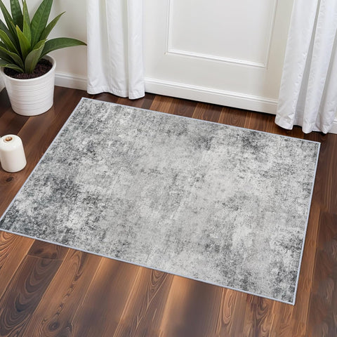 2x3 Washable Abstract Area Rug, Thin Low Pile Non-Slip Indoor Carpet Grey