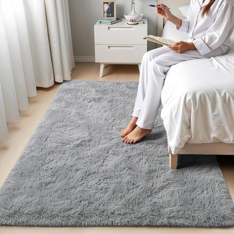 4x6 Fluffy Shag Area Rug, Soft Plush Non-Slip Carpet for Nursery Kids Room Grey