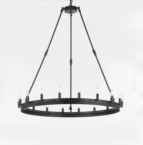 Wrought Iron Vintage Barn Metal Castile One Tier Chandelier Chandeliers Industrial Loft Rustic Lighting W 38" H 40" Size: W 38" H 40" 18 Lights
